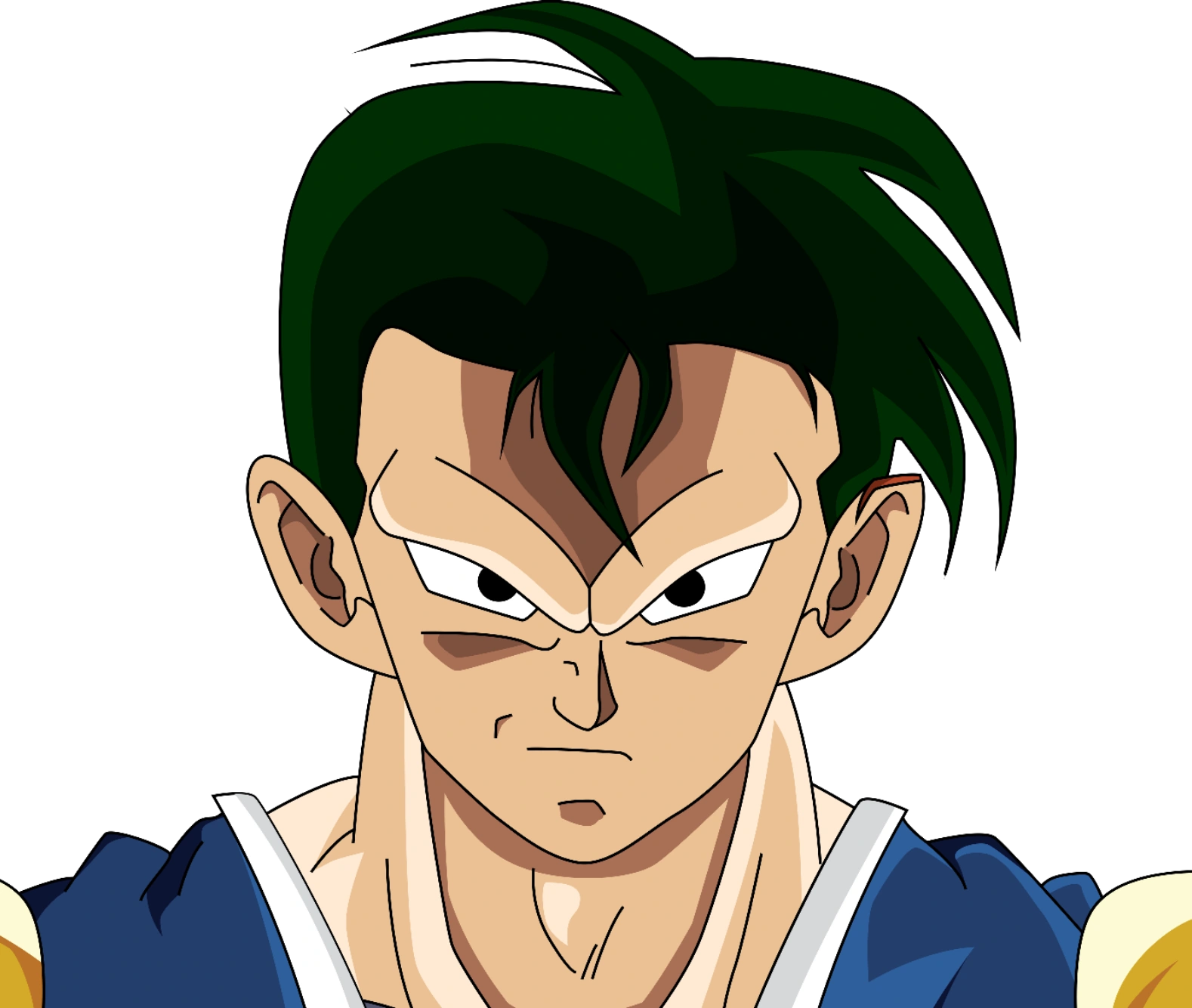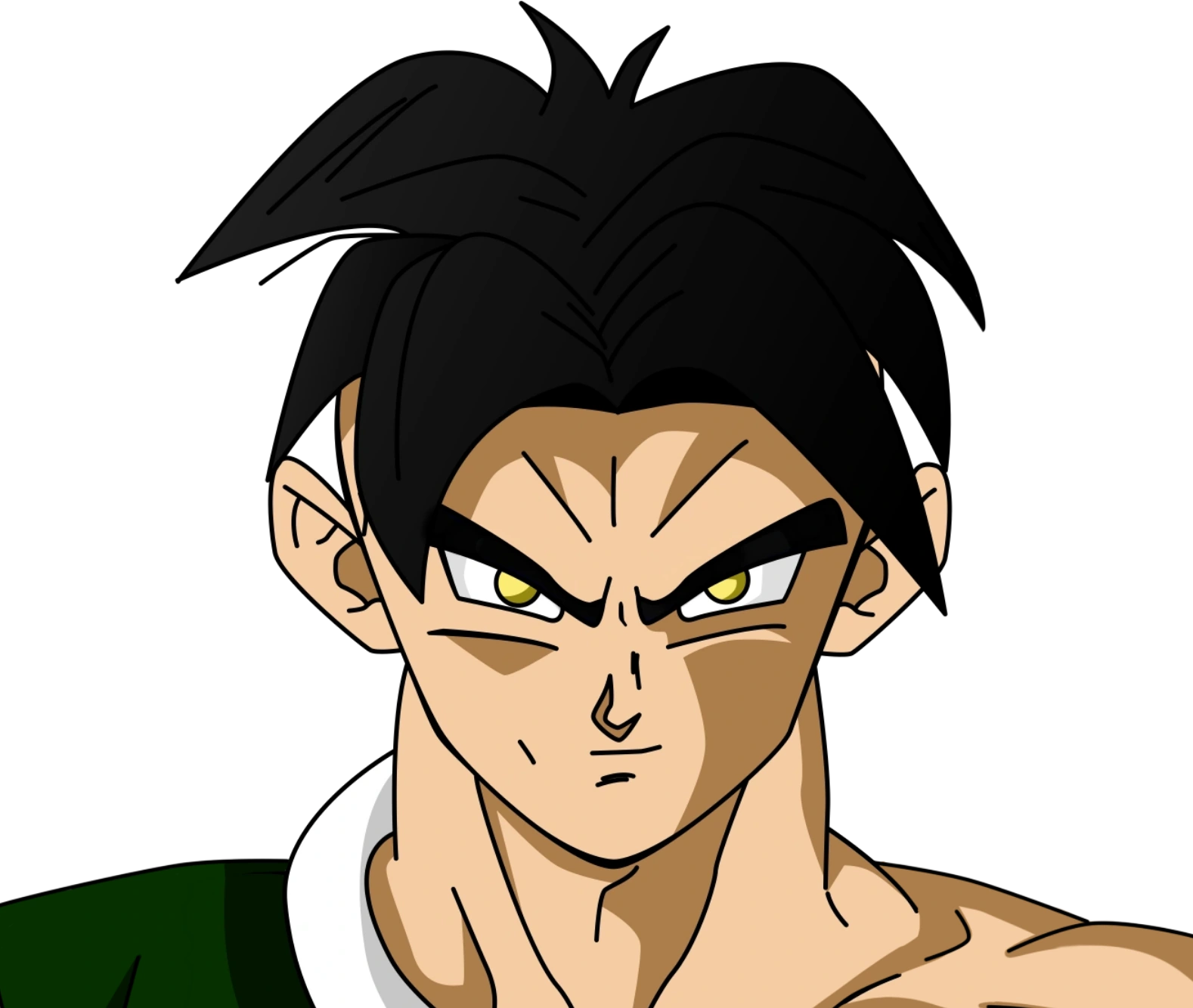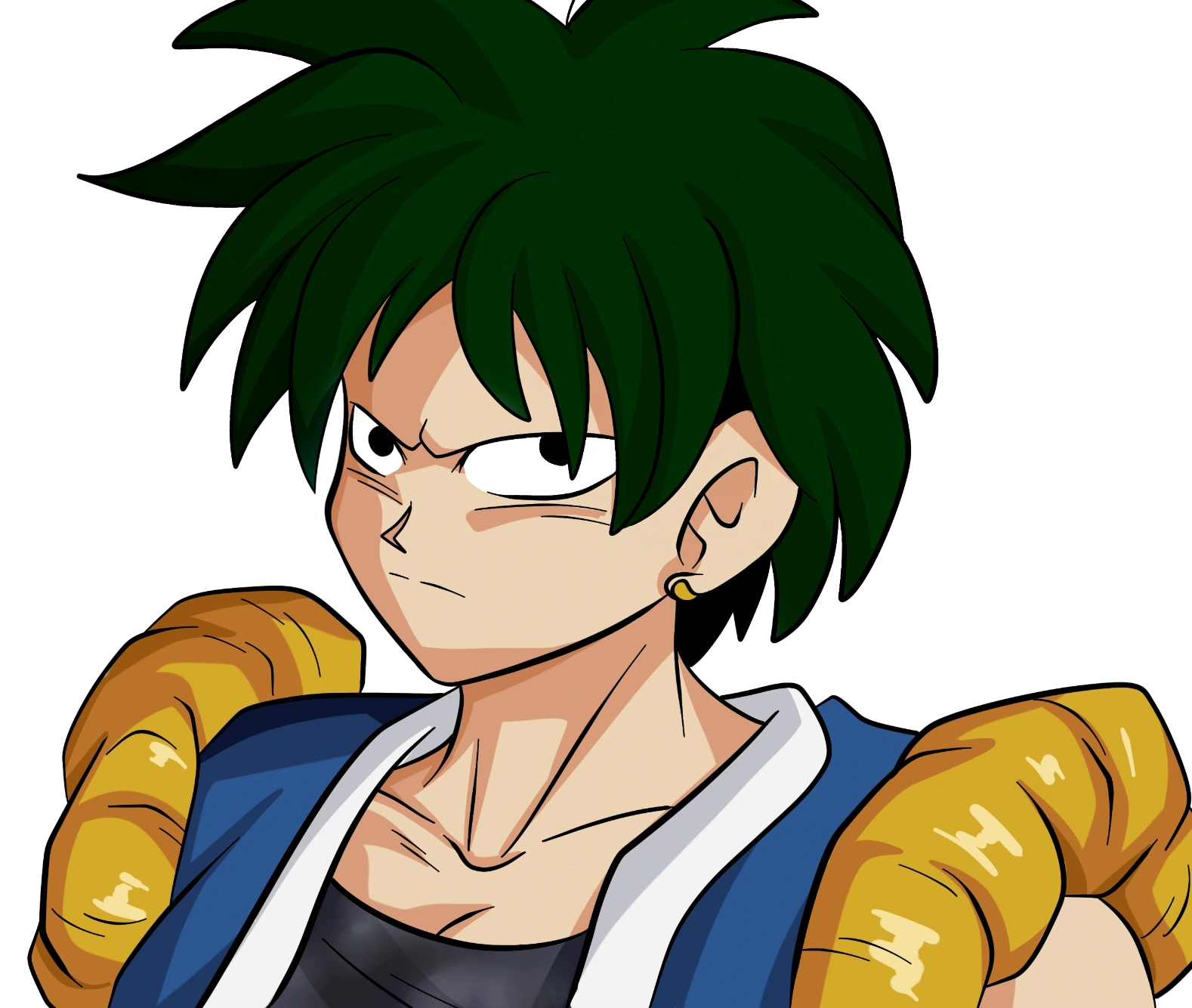 En una nave, se ve a un joven saiyajin navegar por el cosmos con una apariencia totalmente inundada por los nervios.