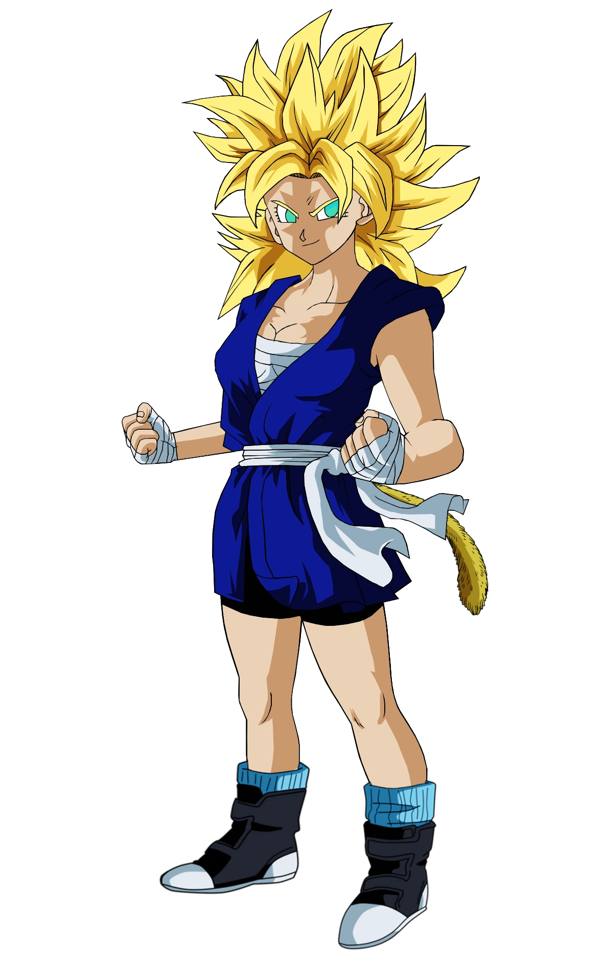 A DenCosmic por las imágenes del personaje en Super Saiyajin Falso y Super Saiyajin.