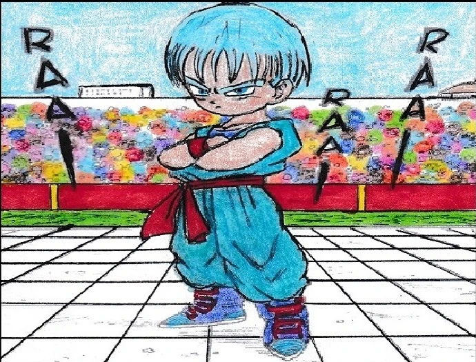 Outside of Piccolo’s house, Piccolo trains Kagyu. They are going to compete in the 32nd Tenkaichi Budokai. In West City at Capsule Corp. Vegeta, Trunks and Chalot are training to compete in the 32nd Tenkaichi Budokai in the Gravity room. As Chalot spars by himself, Vegeta and Trunks both transform into a Super Saiyan and fight against one another