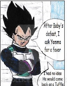 Goku noticed that Yincha is a Tuffle even though he is the child of Yamcha. Vegeta revealed that he is the reincarnation of Baby. Vegeta requested that Baby be reincarnated in a similar matter to Uub after his defeat secretly to King Yemma.