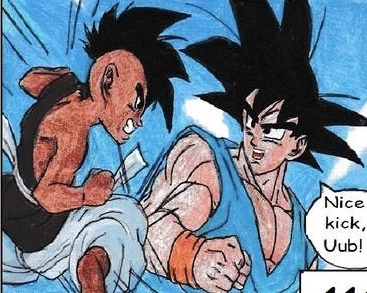 A flashback occurs to Age 784, during a time period with Goku training both Uub and Neko Majin Z. Both put up a decent fight in a sparring match against Goku.