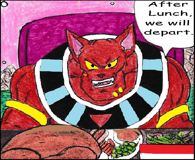 Before Agon returns to the divine realm, he reminds them to bring some food as well. Elsewhere on King Kai’s planet, King Kai learns of the Upcoming Tournament of Destroyers and becomes worried and nervous about it.