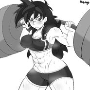 During Cauli's training under ****, she was able to discover the Super Saiyan Blue form after she attempted to transform into a Super Saiyan. In this form, her hair is cyanish-blue though retains its overall style with her eyes being the same color and having a sharp, silky blue aura with a white glow around her body.