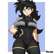 Cauli is a medium height, fair skinned Saiyan woman with somewhat sharp, stern facial features, long, spiky black hair and lilac-colored eyes as opposed to the typical dark coloration that other full blood Saiyans have. She has an athletically muscular and toned build more so compared to other females though this is slightly offset by her curvy body from her modestly large breasts to her wide hips that leads to a well-rounded backside down to her shapely thighs and curvy legs thickened and toned by muscle.