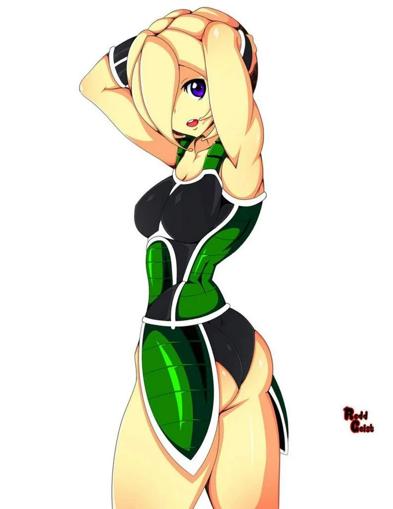 Attire-wise Cinnamon wears the female variant of her grandfathers(Bardock's) Saiyan Armour, taking great pride in wearing it. This armour is usually accompanied by Saiyan wristbands and replicated saiyan armour boots (Women Version).