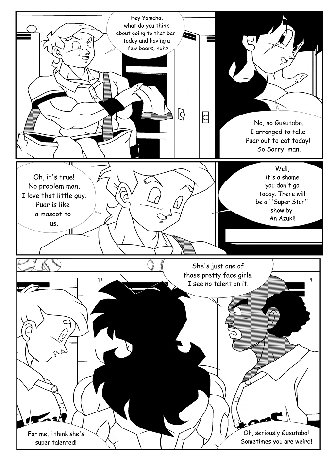 Gusutabo is a promising baseball player, member of the '' Taitans '' team, and is Yamcha's teammate. He is a very humorous man, and lives making jokes among his friends. In addition, Gusutabo is easily attracted to women, which always makes him be in night clubs and bars. On the other hand, he is a man who is "depressed," and is always writing his pains in a diary he keeps with himself. He trusts Yamcha a lot, in which he confided his problems with depression.