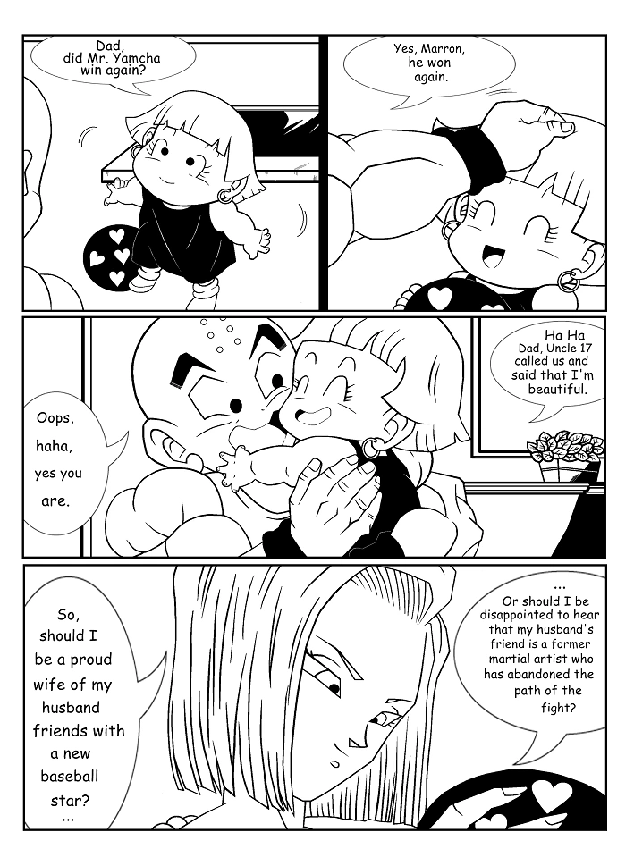 Maron is Krillin's ex-girlfriend. In the past, she had shown herself to be a very self-interested girl, and lived wishing to become famous, and rich. His naive personality, and his beauty, made Maron easily deceived by rich and mean men. After a long time, and visibly frustrated by the failure to try to be a famous woman, Maron decides to return to West City after receiving an offer to work as a business model. Her personality is totally different, and she proves to be a more mature, serial and lovely woman. She reunites with Yamcha, and develops feelings for him after discovering how sweet - and unlike the other men she has lived with - he can be.