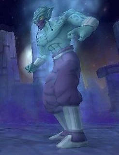 Soba is a tall, green-skinned Yardrat. He is the taller type of Yardrat with a bulbous, squid-like head. He tends to wear the standard Yardrat attire while adventuring, though while sparring, he wears only black training pants. His aura is light blue.