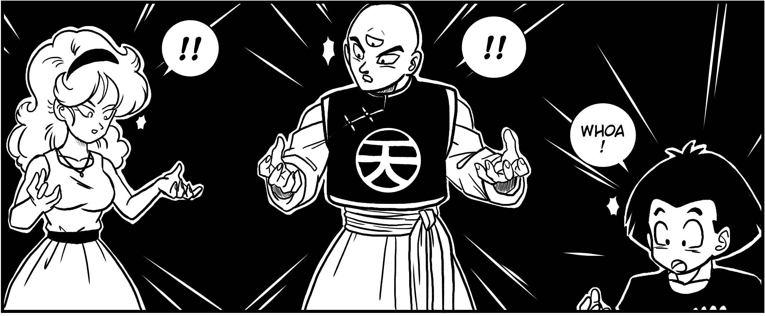 Four months after the 28th World Martial Arts Tournament; Tien, Launch, and Krillin were with Shenron. Krillin had used his wish to have him, Tien Shinhan, and Yamcha's Potential Unleashed while Launch used her wish to make Tien, Krillin, Yamcha, and herself look and feel 20 years old.